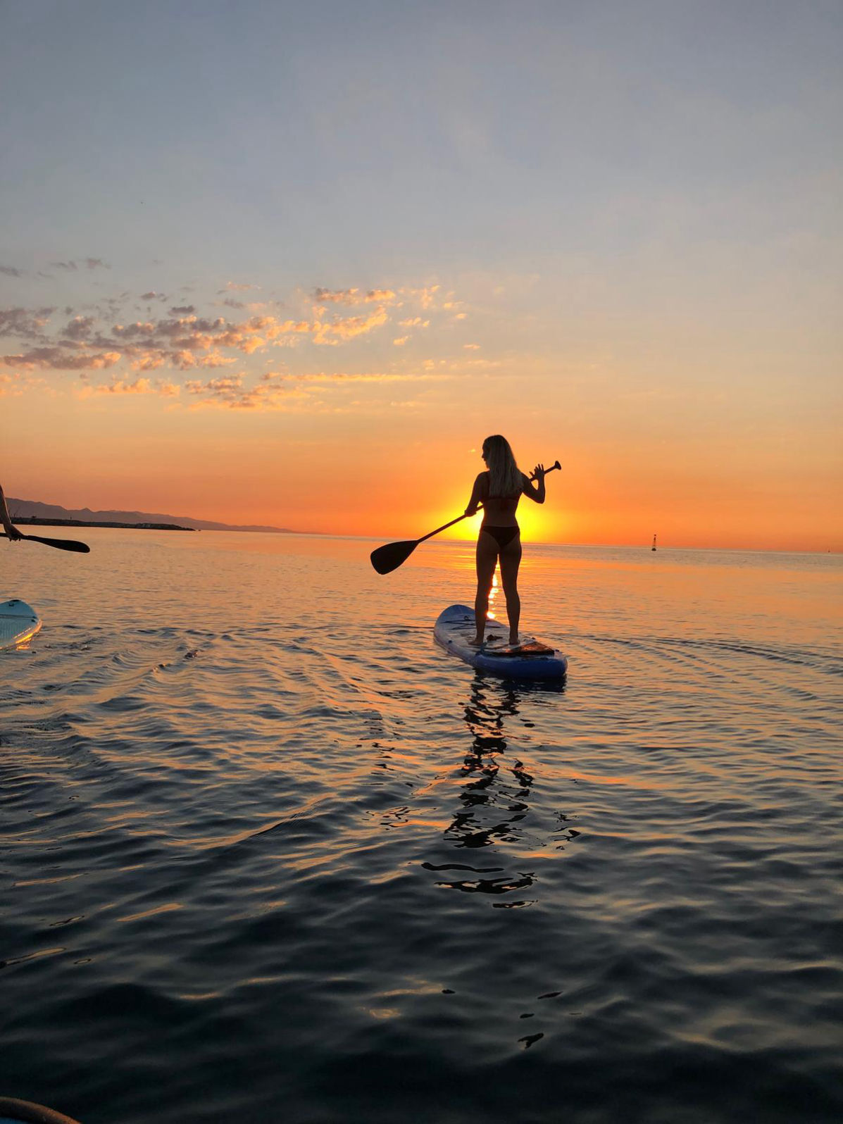 El sunrise paddle surf no solo mejora la fuerza, el equilibrio y la coordinación, también aporta una profunda sensación de paz y energía positiva para afrontar la jornada. Respirar el aire fresco, escuchar el sonido del agua y sentir cómo el cuerpo se activa suavemente, genera un estado de mindfulness natural que difícilmente se consigue en la rutina diaria.